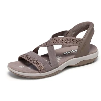 Skechers Beverlee Timeless Touch Textile WoMens Taupe Sandals Size UK 6