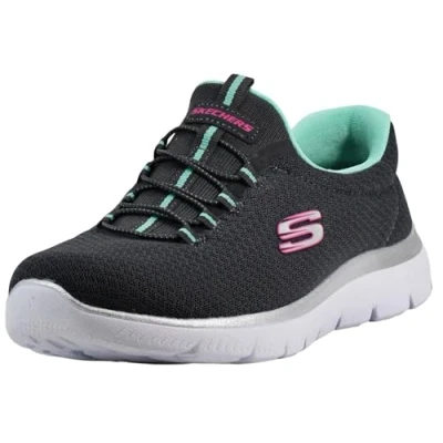 Skechers Summits Womens Slip On Bungee Sneakers Charcoal/Green 9.5 W