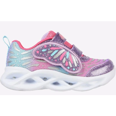Dazzle your steps in style and comfort with Skechers S Lights: Twisty Brights - Wingin' It. This casual lightweight slip-on features a mesh and glitter synthetic upper with butterfly wing instep strap, plus a light-up midsole. - Toddler sizes do not feature the on/off light switch - Mesh and glitter synthetic upper - Cushioned comfort insole - Slip-on style with a butterfly wing instep strap - Shock-absorbing sculpted twisted midsole - Flexible traction outsole