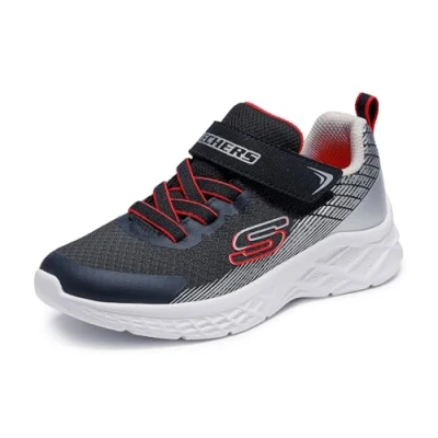 Skechers Unisex Kids Boys Trainers, Black Textile Synthetic Silver Red Trim, 4 UK