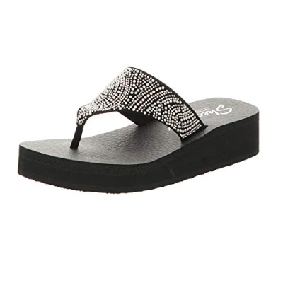 Skechers VINYASA STONE CANDY, Women's Flip Flop, Black (Black Mitobuck/Smoke Rhinestone Blk), 5 UK (38 EU)