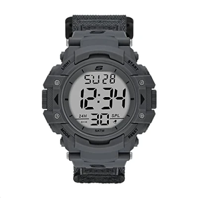 55mm case, 28mm band width, mineral crystal, Quartz movement with digital analog display, imported. Round polyurethane case, with a positive display dial. Black, polyurethane band. Water resistant up to 50m: Wearable while swimming in shallow water.