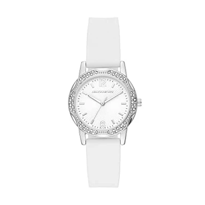 Skechers Watch For Women, Quartz Movement With Silicone, Polyurethene, Leather Or Stainless Steel Strap, White and glitter, 32MM