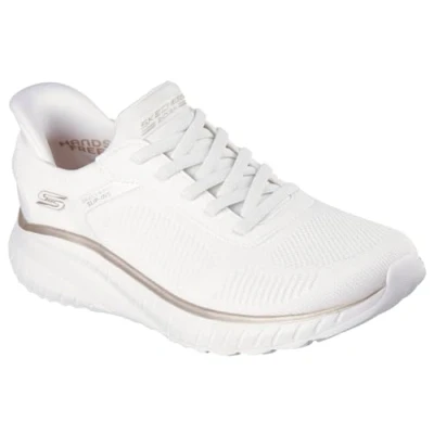 Skechers Women's Bobs Squad Chaos Current Muse Slip On Sneakers, White/Gold Textile, 3 UK