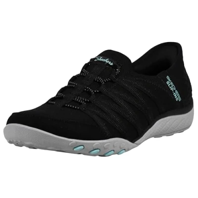Skechers Women's Breathe Easy Roll with Me Sneaker, Black/Aqua, 5.5 UK
