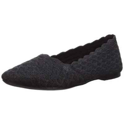 Skechers Women's Cleo Scalloped Knit Skimmer Ballet Flat, Black, 6 UK