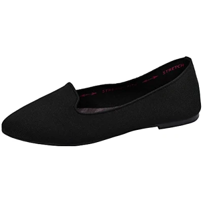 Skechers Women's Cleo Sherlock Engineered Knit Loafer Skimmer Ballet Flat, Black, 4.5 UK