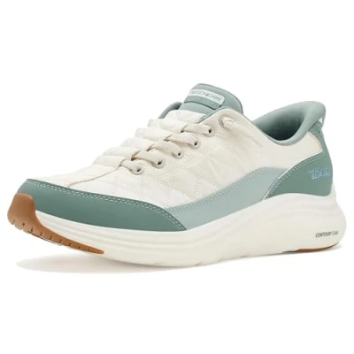 Skechers Women's Contour Foam Sneaker, Off White Mesh/Sage Duraleather/Leather/Trim, 7 UK