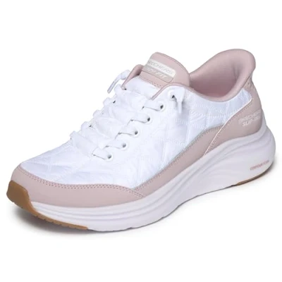Skechers Women's Contour Foam Sneaker, White Mesh/Lavender Duraleather/Leather/Trim, 7 UK