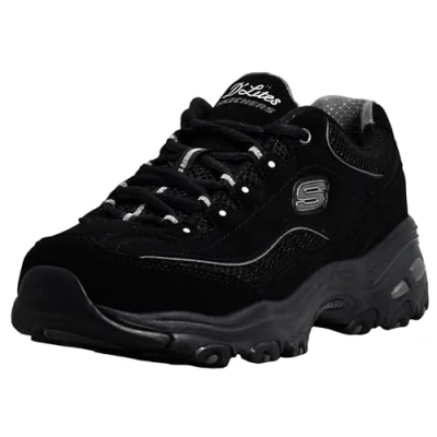 Skechers Women's D'Lites Play ON Fashion Sneaker, Black, 5.5 UK