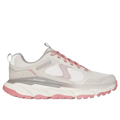 Skechers Women's D'Lux Journey Franconia Sneaker, Natural Leather/Textile/Pink Synthetic, 4 UK