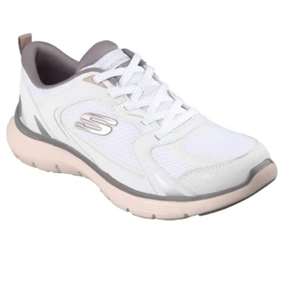 Skechers Women's Flex Appeal 5.0 Retro Rush Sneaker, White Duraleather/Mesh/Multi Trim, 5 UK