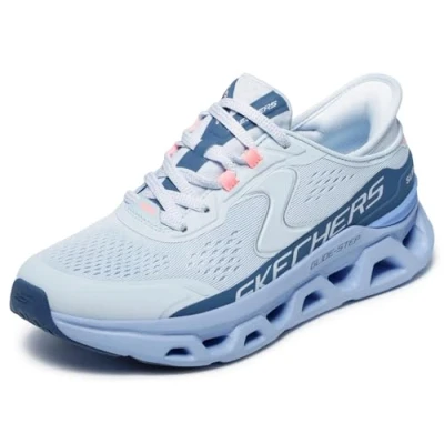 Skechers Women's Glide Step Altus Slip On Sneakers, Light Blue Synthetic/Mesh/Blue Trim, 4 UK