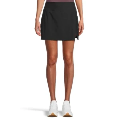 Skechers Women's Go Flex Rib Skort GOFLEX RIB: 80% Nylon, 20% Spandex Side slit with bartack/ Breathable mesh inner short Reflective Diamond logo Short Inseam: 3.5” Skirt length: 16.5”