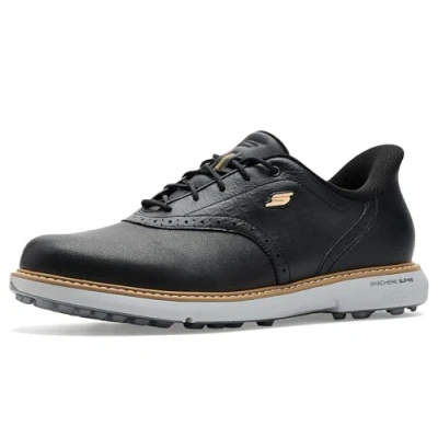 WATERPROOF PROTECTION: Featuring a one-year waterproof warranty, these womens sneakers keep your feet dry and comfortable in any weather. SUPERIOR TRACTION: The spikeless outsole provides excellent grip and stability on the golf course for running shoes for women. CUSHIONED COMFORT: Designed with Skechers' Heel Pillow technology, a removable Arch Fit insole, and lightweight ECO FLIGHT cushioning for all-day comfort. DURABLE CONSTRUCTION: The lace-up leather upper ensures lasting wear for these womens sneakers.