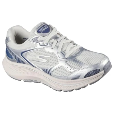 Skechers Women's Go Run Consistent 2.0 Volt Sneaker, Silver Leather/Navy Trim, 6.5 UK