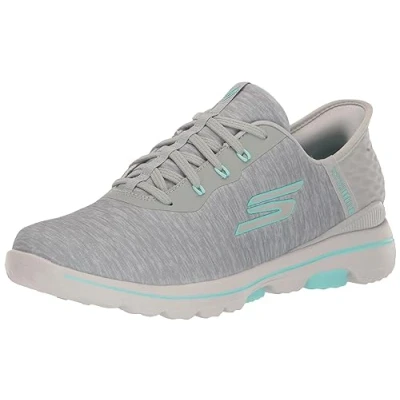 Skechers Women's Go Walk 5 Relaxed Fit Slip in Golf Shoe Sneaker, Gray/Aqua, 9