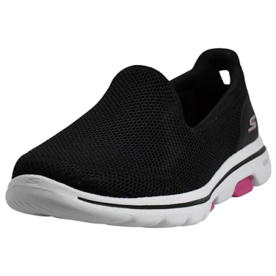 Skechers Women's GO Walk 5 Slip On Trainers, Black Textile Hot Pink Trim, 2 UK