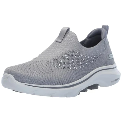 Skechers Women's GO Walk 7 Bling Sneaker, Gray, 8 UK