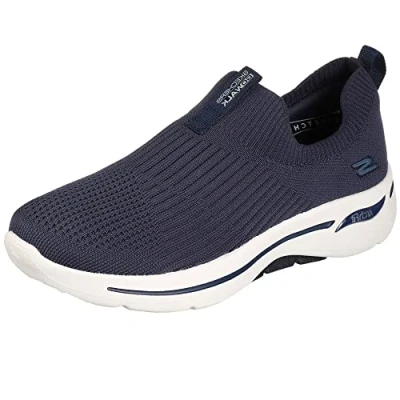 Skechers Women's Go Walk Arch Fit Iconic Sneaker, Navy Textile Trim, 7.5 UK