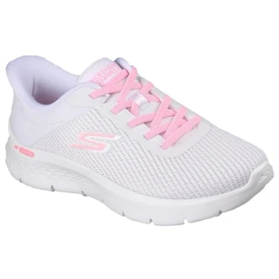 Skechers Women's Go Walk Flex Carla Sneaker, White Textile/Pink Trim, 5 UK