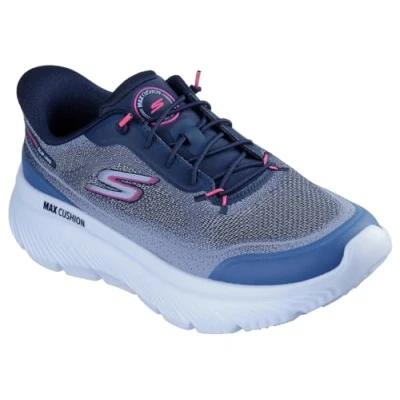 Skechers Women's Go Walk Max Cushioning Hyper Burst Nikita Sneaker, Navy Textile/Pink Trim, 3.5 UK