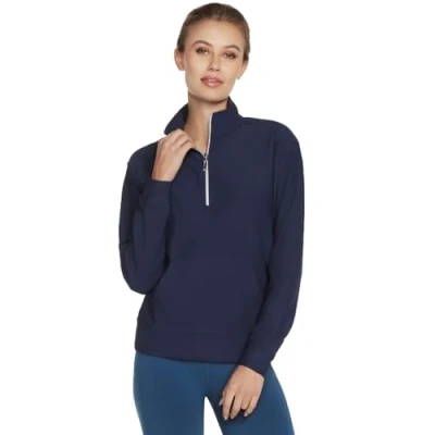 Skechers Women's Goluxe Rib 1/4 Zip Sweater, Blue Iris, S