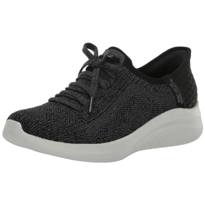 Skechers Women's Hands Free Ultra Flex 3.0 Brilliant Path Sneaker, Black/White, 3.5 UK