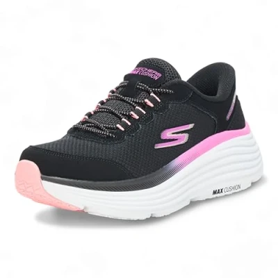 Skechers Women's Max Cushioning Endeavour Cardova Sneaker, Black Textile/Pink Trim, 3.5 UK
