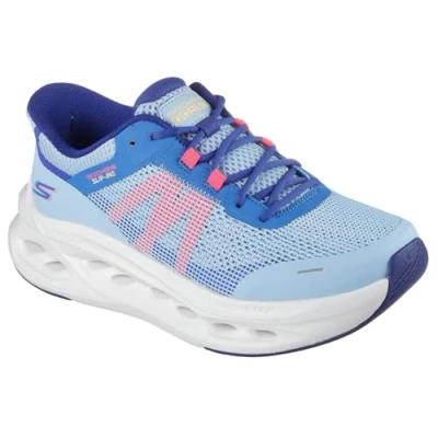 Skechers Women's Max Cushioning Glide Step Aberdeen Sneaker, Lt. Blue Synthetic/Coral Trim, 4 UK