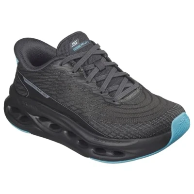 Skechers Women's Max Cushioning Glide Step Sapphire Sneaker, Black & Blue Textile/Synthetic, 5 UK