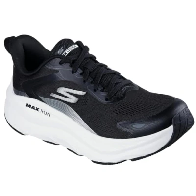 Skechers Women's Max Run Pacewave Sneaker, Black Synthetic/White Trim, 5.5 UK