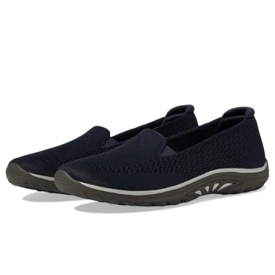 Skechers Air-cooled memory foam insole Relaxed fit for roomy, comfortable fit Made with 100% vegan materials Flexible traction outsole Machine washable