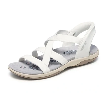 Skechers Women's Reggae Slim Stretch Flex Hands Free Slip ins Sandal, White opulent garden, 6 UK