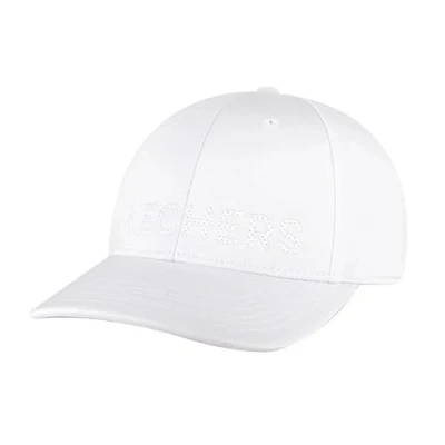 Baseball hat with a soft woven fabric design 3D textured Skechers matching color design across front panel Adjustable side fabric closure back Stitched trim and embroidered eyelets
