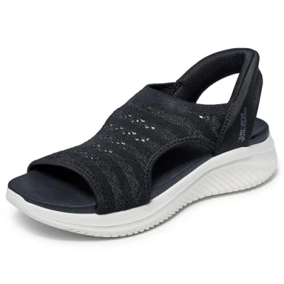 Skechers Women's Ultra Flex 3.0 Sun Warmth Hands Free Slip ins Sandal, Black, 5 UK