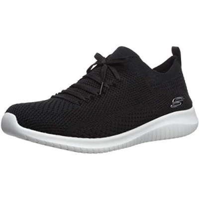 Skechers Women's Ultra Flex Statements Sneaker, Black White, 3 UK