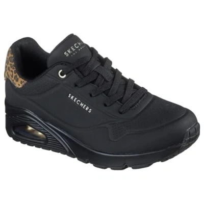 Skechers Women's Uno Jungle Nite Sneaker, Black Durabuck/Leopard Printed Suede/Mesh T, 3.5 UK