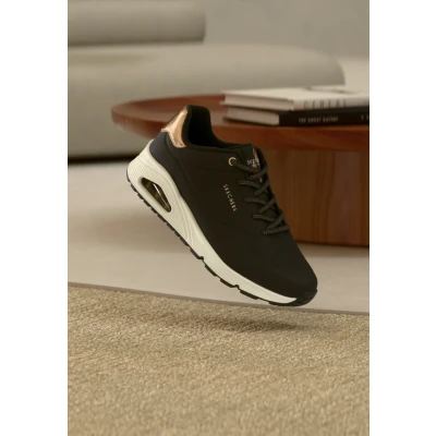 Skechers Wide Fit UNO Trainers black/rose goldcoloured Sale at Zalando UK | Upper material: PU/Lining: polyester/Sole: synthetics/Insole: textile | Sale order at Zalando UK! Size: 5. Color: Black/rose gold/coloured. Pattern: plain.