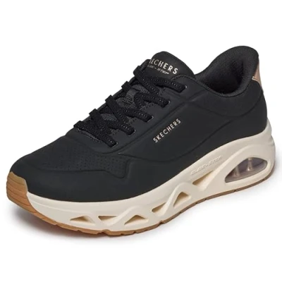 Skechers Women's Uno Step Glide On Air Sneaker, Black Durabuck/Rose Gold Trim, 3 UK