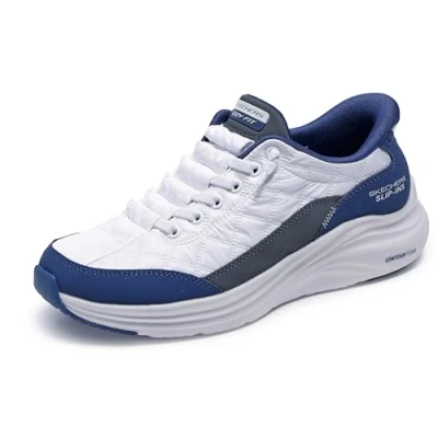 Skechers Women's Contour Foam Sneaker, White Mesh/Navy Duraleather/Leather/Trim, 4 UK