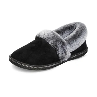 Skechers Women's Cozy Campfire Team Toasty Low Top Slippers, Black Microfiber Suede Faux Fur Line Blk, 5.5 UK