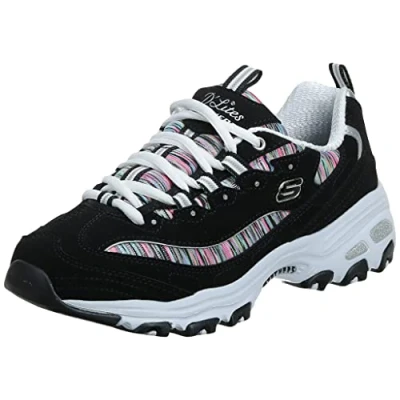 Skechers Womens d Lites Low Top Lace Up Fashion Sneakers, Black/Multi, Size 7.5 US / 5.5 UK