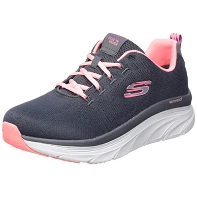 Skechers Women's D'LUX Walker GET Oasis Sneaker, Charcoal Mesh/Coral Trim, 6 UK