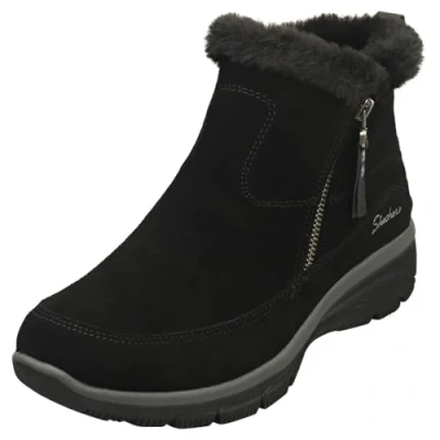 Skechers Women's Easy Going Cool Zip Ankle Boot, Black Suede, 6.5 UK
