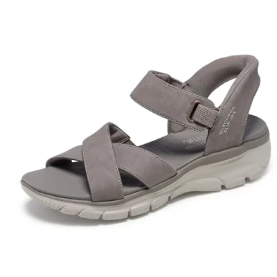 Skechers Women's Easy Going Somewhere Sunny Sneaker, Taupe Duraleather/Gore, 8 UK