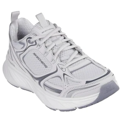 Skechers Women's Edgeride Silver Eclipse Sneaker, Gray Mesh/Duraleather/Trim, 8 UK