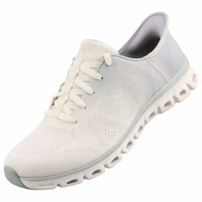 Skechers Women's Glide Step Excite Slip On Sneakers, Gray & Off White Mesh, 6.5 UK