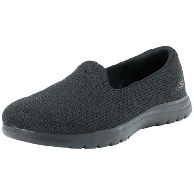 Laceless fit skimmer with mesh knit upper Flexible traction outsole 1-inch heel height Lightweight and responsiveultra go cushioning