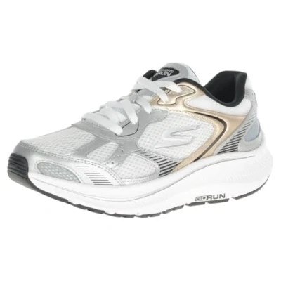 Skechers Women's Go Run Consistent 2.0 Volt Sneaker, White Leather/Silver Trim, 3.5 UK